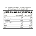 Protein Blend [Milk Protein Isolate, Hydrolysed Wheat Protein, Soy Protein Isolate, Whey Protein Isolate (Emulsifier: Sunflower Lecithin)(Milk)], Couverture Milk Chocolate with Sweetener [Sweetener (Maltitol), Cocoa Butter, Whole Milk Powder, Cocoa Mass, Emulsifier: Lecithins (Soya), Natural Vanilla Flavouring], Humectant [Glycerol], Caramel Flavour Filling [Humectant (Glycerol), Maltodextrin, Oligofructose, Bulking Agent (Maltitol Powder), Coconut Oil, Skimmed Milk Powder, Modified Starch, Water, Colour (Plain Caramel), Gelling Agent (Pectin), Stabiliser (Calcium Lactate), Emulsifier (Rapeseed Lecithin), Natural Flavourings, Salt, Thickener (Xanthan Gum)], Soluble Tapioca Fibre, Sweetener [Maltitol Syrup, Sucralose], Water, Mini Mallows [Glucose Fructose Syrup, Sugar, Water, Pork Gelatin, Maize Starch, Colour E162, Natural Flavouring], Fat-Reduced Cocoa Powder, Natural Flavouring.