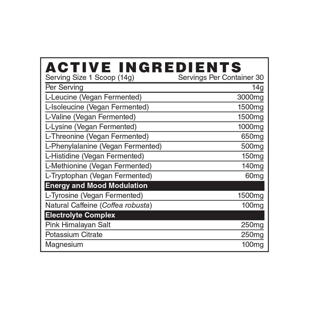 Winter Soldier Illmatic® EAA is formulated with 10 grams of AMINO ACIDS and 600mg of electrolytes. Illmatic® EAA’s help promote muscle protein synthesis, enhanced recovery, increased training endurance and hydration.